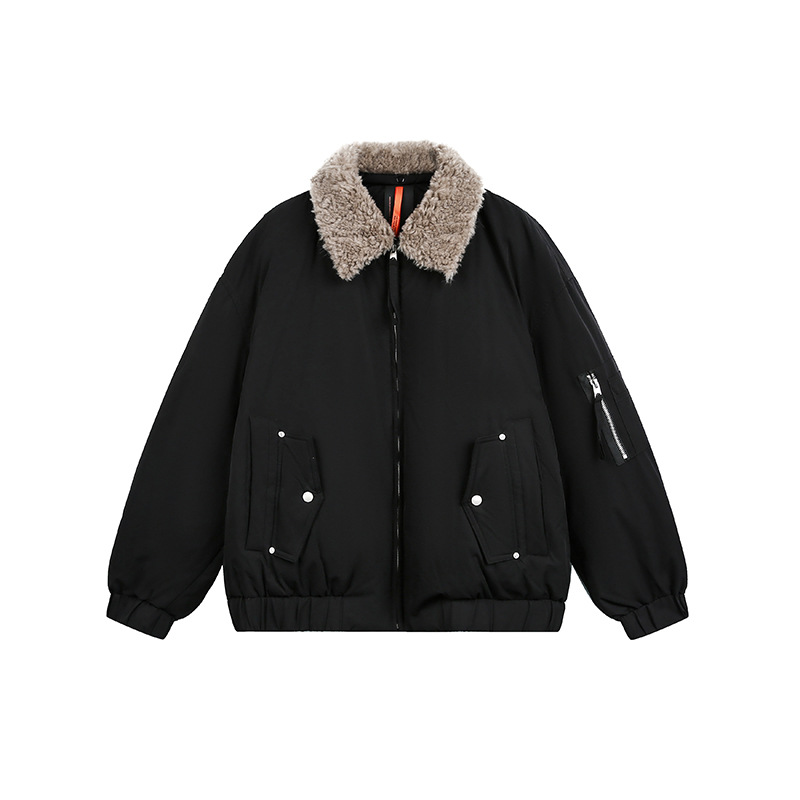 Detachable Fur Collar Warm Down Jacket Men Women Flight Coat